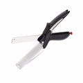 Product Description: 2-in-1 Steel Smart Clever Cutter Kitchen Knife Food Chopper and in Built Mini Chopping Board with Locking Hinge